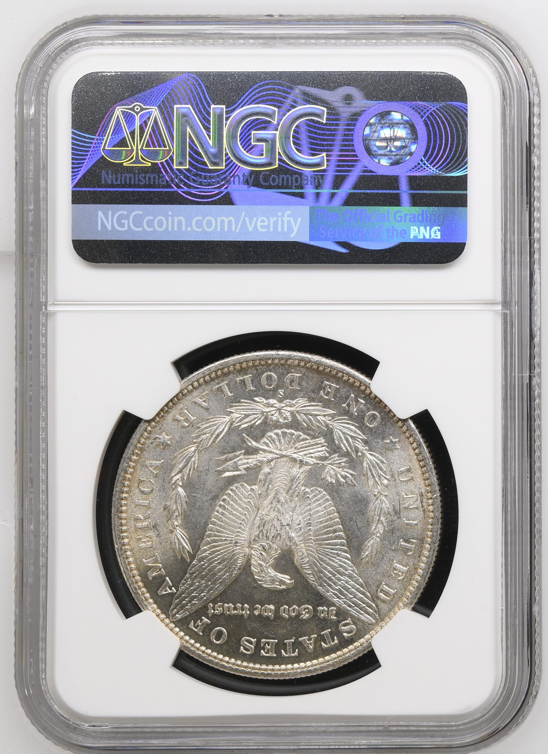 This is a beautiful Morgan, lustrous and almost entirely untoned (except on the edges of the reverse). Truly a gem!