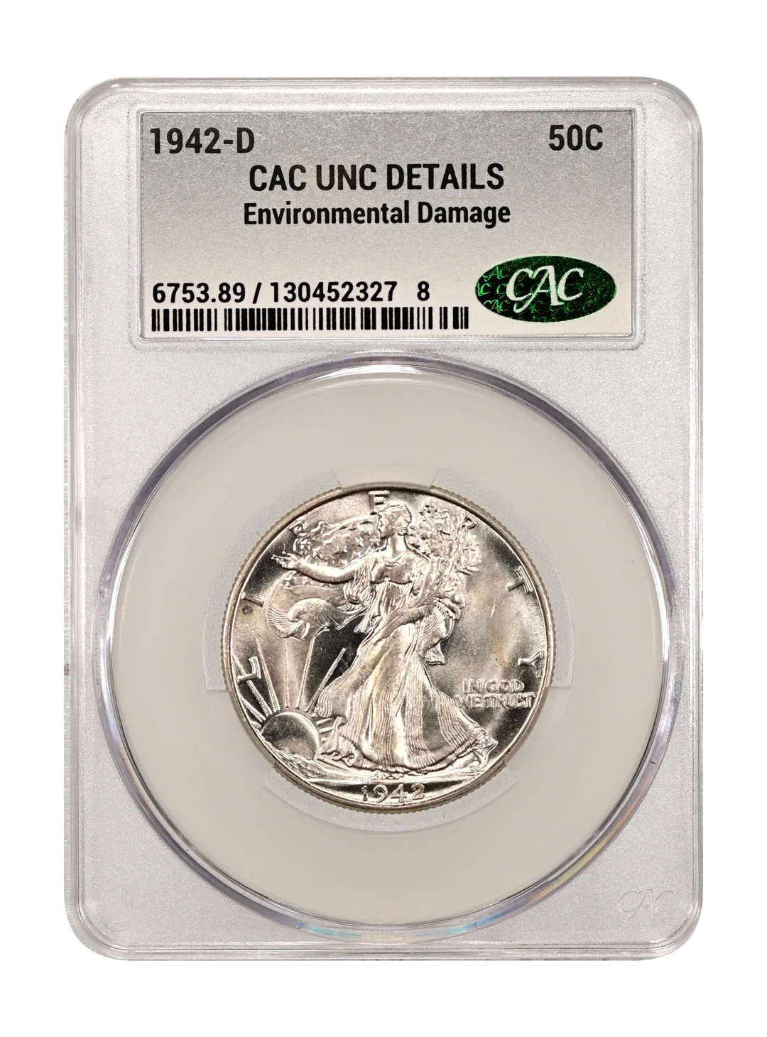 1942-D Walking Liberty Half Dollar CACG UNC DETAILS