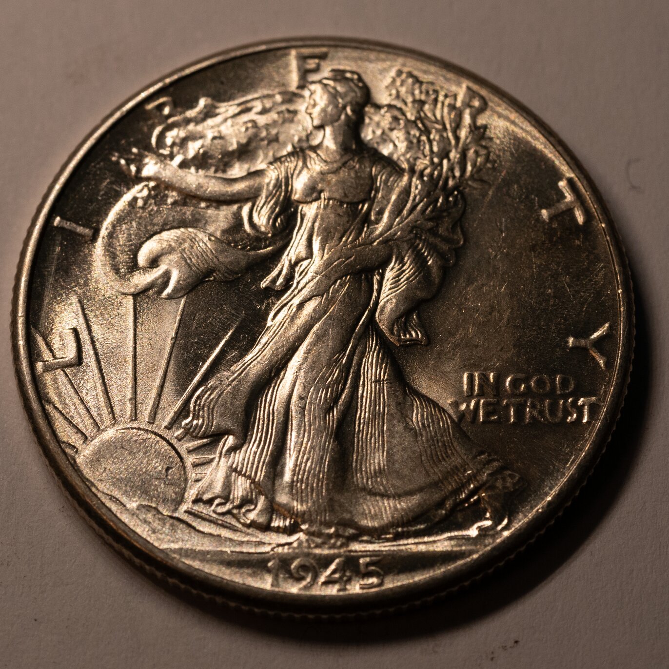 This almost uncirculated Walking Liberty has wonderful luster, despite having the beginnings of wear.